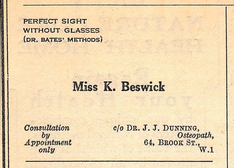 Bates Method Teachers in 1924... from 'THE Herald of the Star'. On the same page Teachers, Doctors were advertising Relaxed... breathing, Color Treatment and other natural health practices.