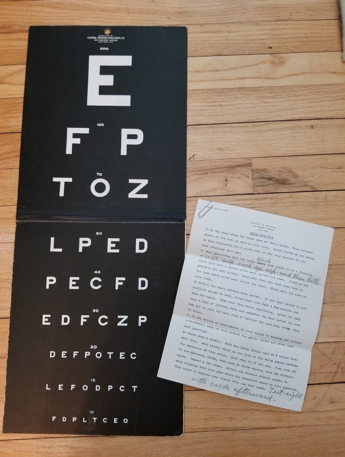 Won an auction on Ebay today. A E Eyechart from Dr. Bates, his wife, Clinic Assistant Emily A. Bates. Seller was from New jersey!