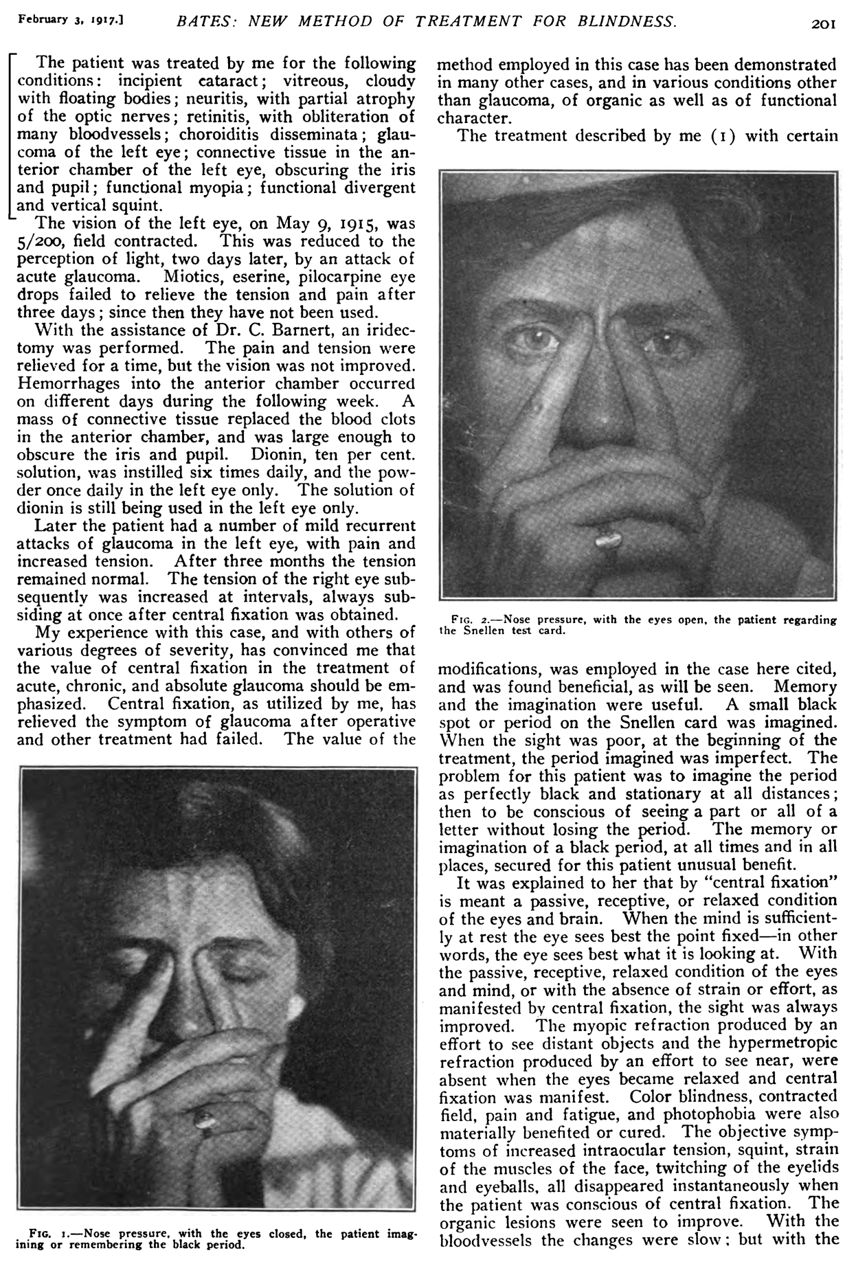 Found some Medical Articles by Dr. Bates. Same as older ones that have been on the internet for years, but the new have better pictures; looks like the lady in two pictures is Emily! Notice her ring; appears be same as she is wearing in Perfect Sight Without Glasses Palming picture, and other medical article sunlight pictures.