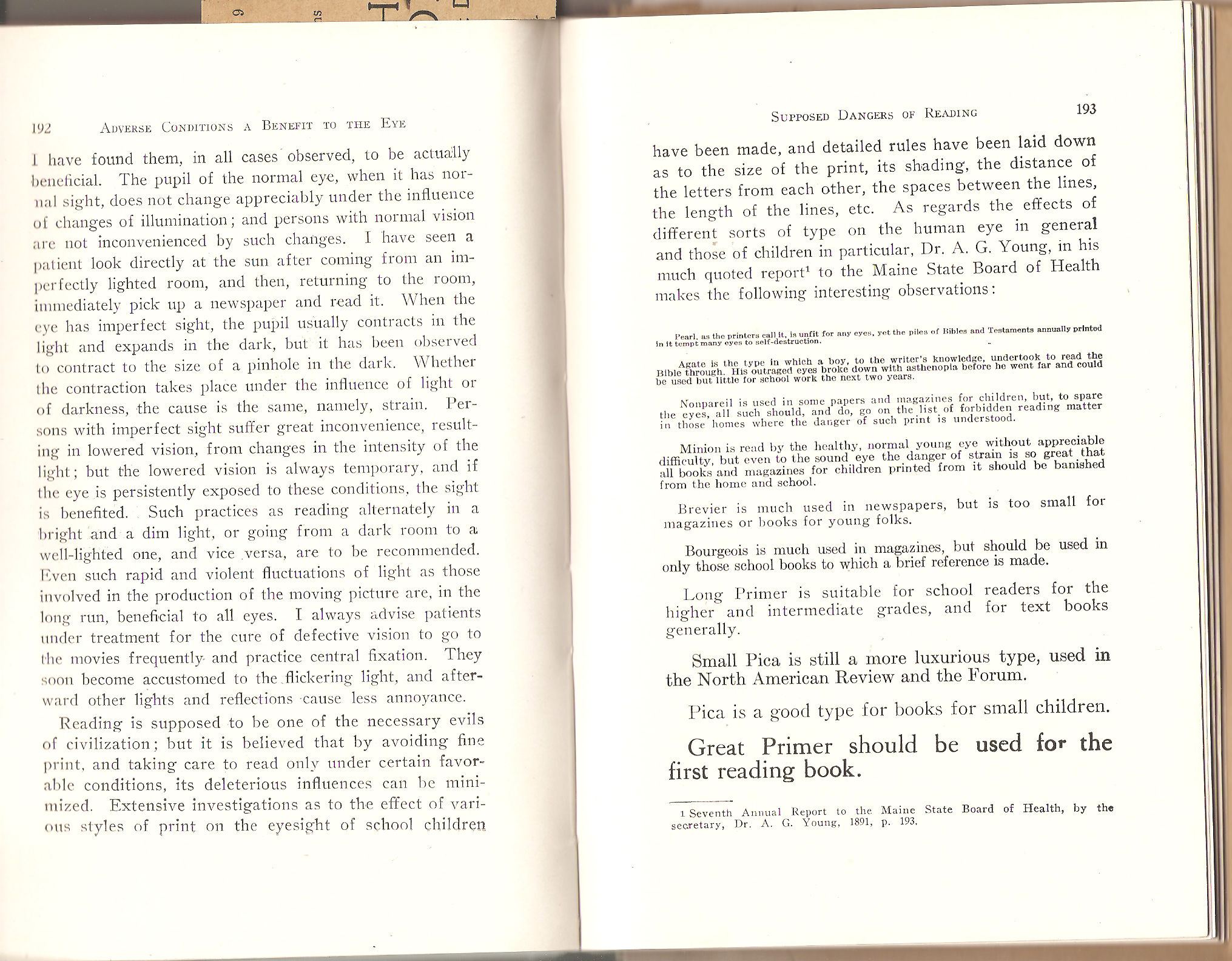 I still do not know the number of each letter size on the list below but at least this gives the measurement of a page in Dr. Bates book reduced in size to microscopic.
